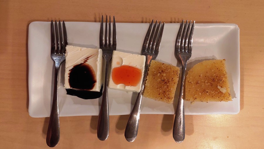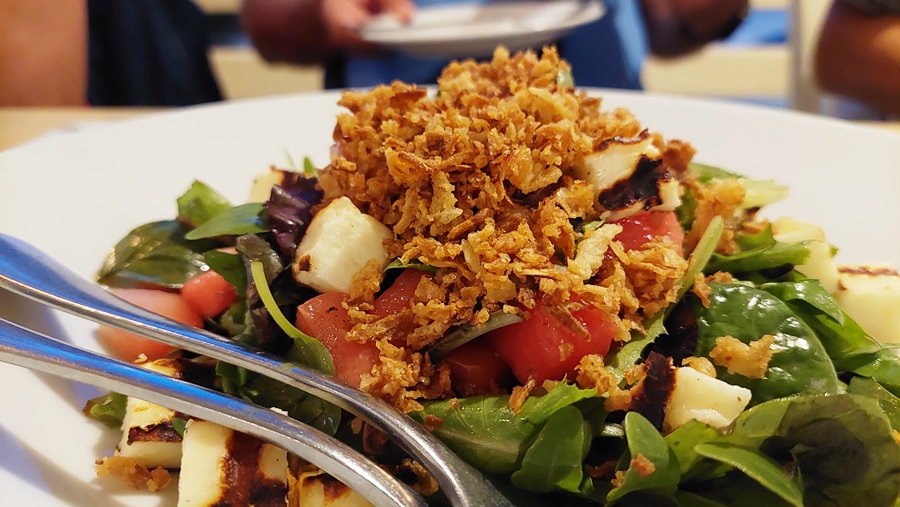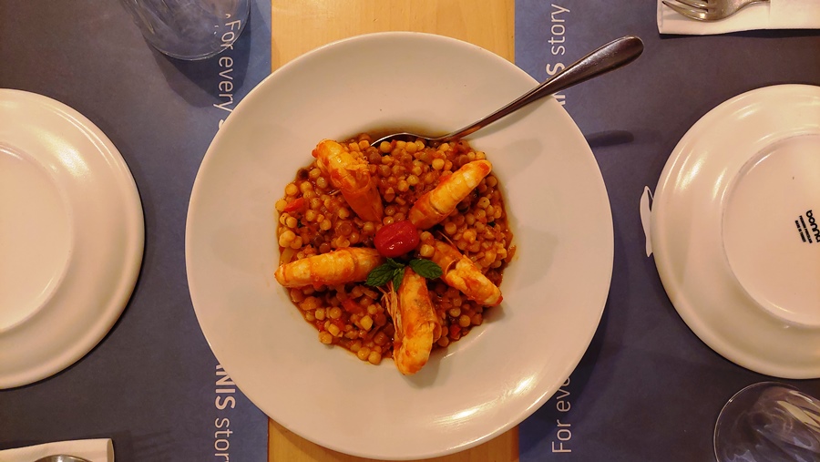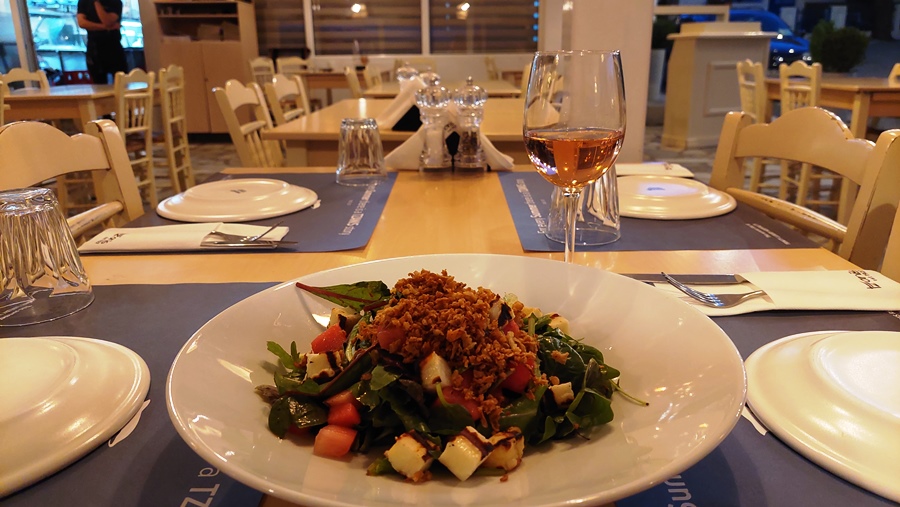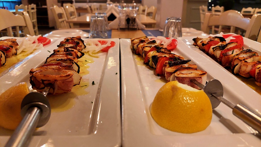 Salată grecească, souvlaki de calamar, supă de midii, desigur și un desert, toate trebuie încercate. Vinul, nelipsit de la orice masă asezonează perfect fiecare fel de mâncare.